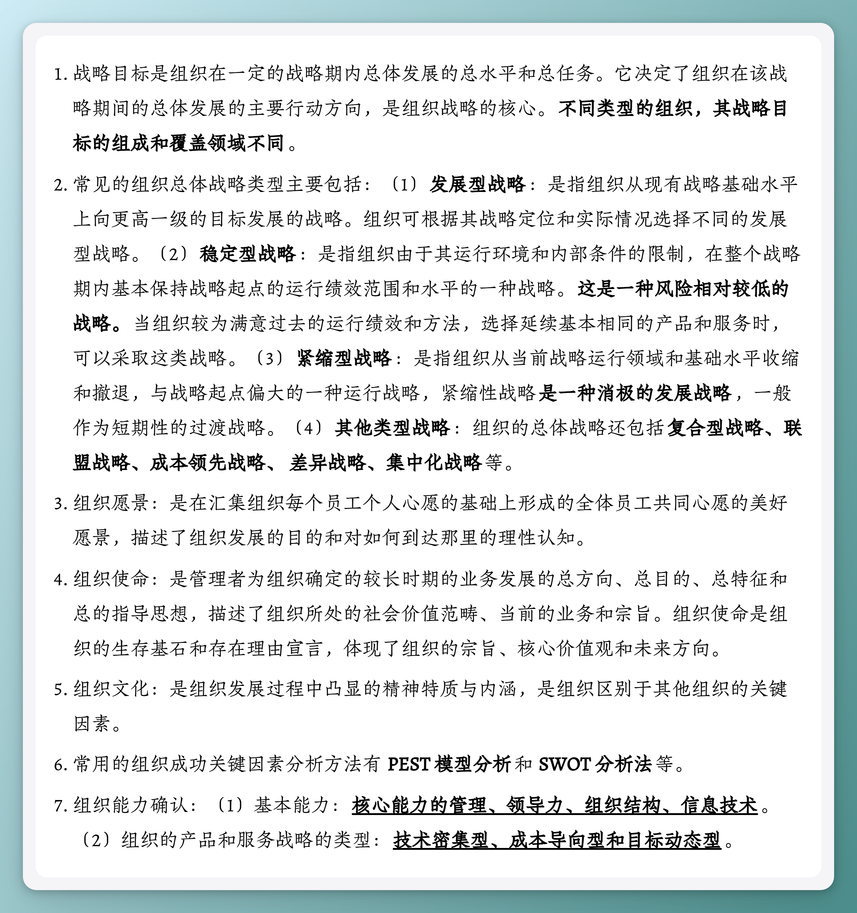 3. 国家信息化 6 要素:信息技术应用(龙头、主阵地)、信息资源(核心任务)、信息网络(基础设施)、信息技术和产业(物质基础)、信息化人才(成功之本)、信息化政策法规和标准规范(根本保障)。